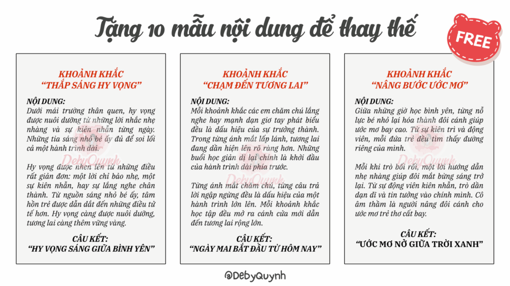 - Tặng kèm 10 nội dung khác nhau để thay thế vào file ảnh