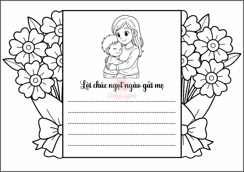 File thiết kế sẵn trên Canva – dễ dàng thêm và chỉnh sửa nội dung, dùng để in ra cho học sinh làm hoạt động mừng ngày 20/10, 8/3 hoặc ngày của mẹ (có thể tận dụng làm phiếu bài tập)