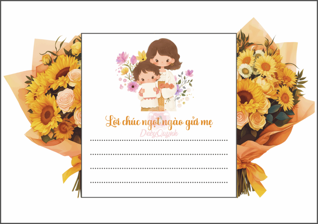 Mỗi thiệp sẽ nằm trên 1 trang A4 ngang: