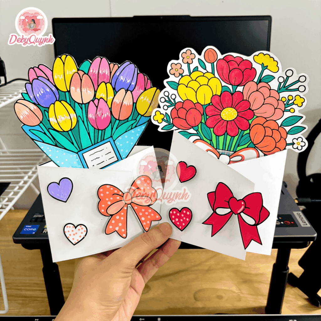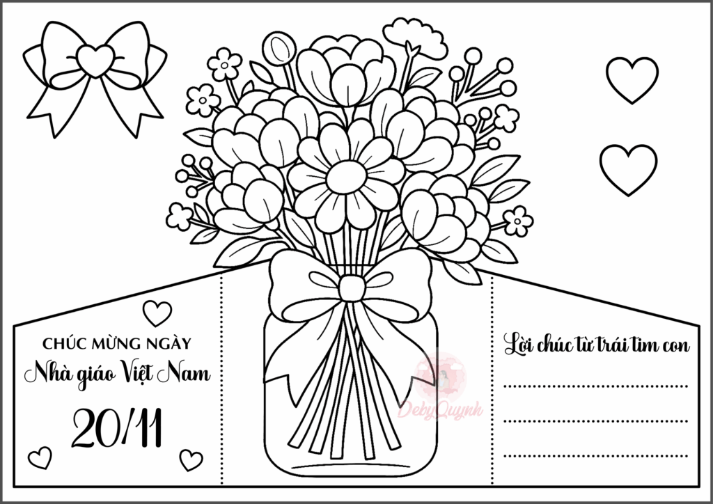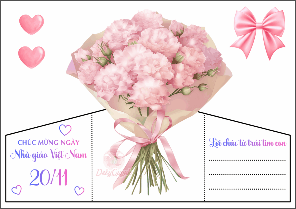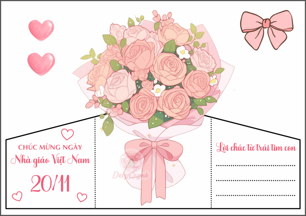 Thiệp giống như là một bó hoa nằm bên trong bì thư, rất ý nghĩa để các con viết lời tri ân gửi đến thầy cô của mình