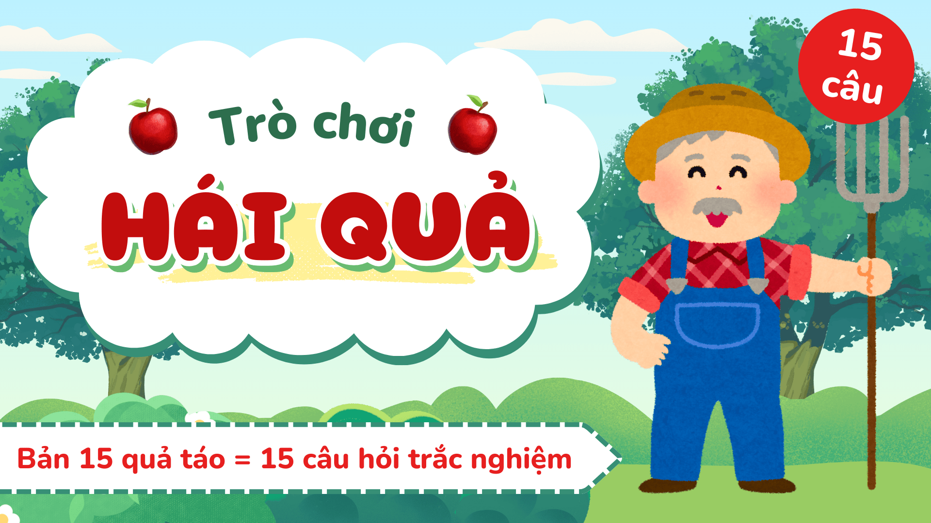 Trò chơi Hái Quả PowerPoint – Game vui học siêu dễ thương (phiên bản 15 quả táo = 15 câu hỏi trắc nghiệm)