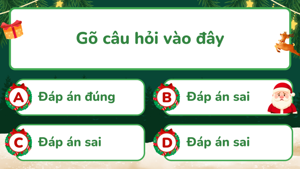 Trò chơi Món quà Giáng sinh – Game PowerPoint tương tác, ngẫu nhiên và cuốn hút (phiên bản 06 hộp quà = 06 câu hỏi trắc nghiệm)