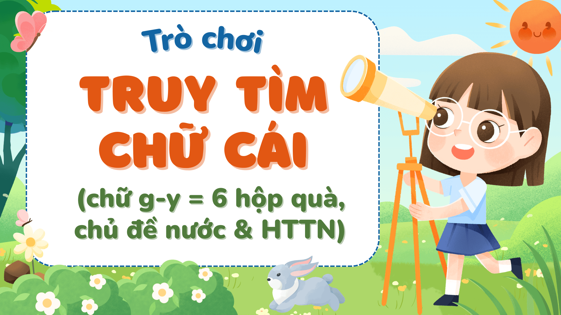 Game Truy tìm chữ cái – Game PowerPoint tương tác giúp bé mầm non vừa học vừa chơi (phiên bản chữ g – y in thường – in hoa – viết thường = 6 hộp quà, chủ đề Nước và hiện tượng tự nhiên)