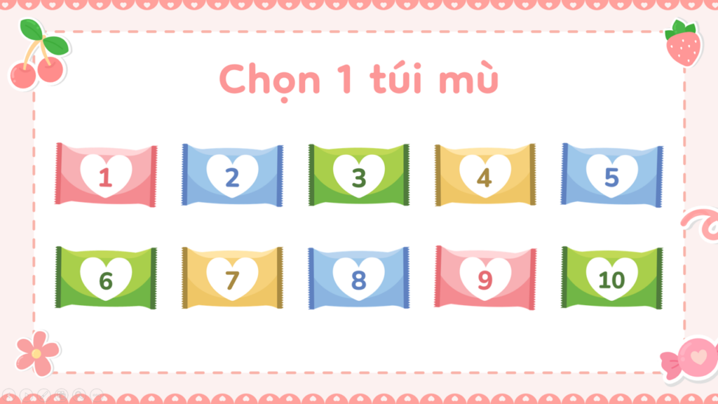 Game PowerPoint Xé túi mù là một trò chơi tương tác vui nhộn, cực kỳ phù hợp cho giáo viên mầm non sử dụng trong hoạt động làm quen chữ cái, nhận biết hình ảnh hoặc ôn tập kiến thức theo chủ đề.