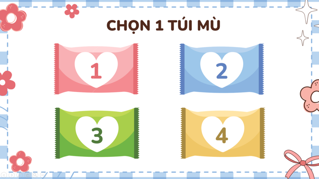 Game Xé Túi Mù PowerPoint (phiên bản 4 túi mù = 4 câu hỏi trắc nghiệm)